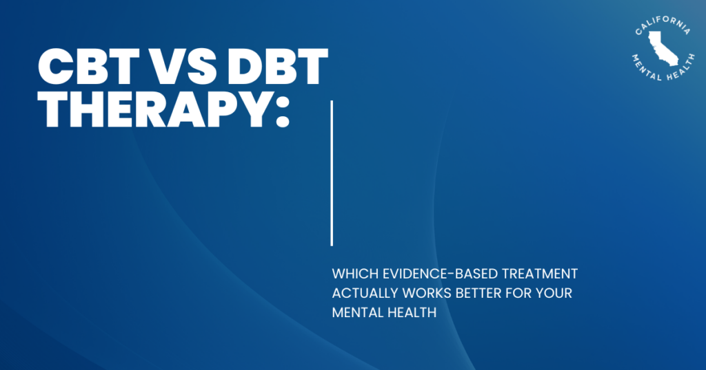 No one-size-fits-all therapy exists to answer the question of CBT vs. DBT therapy. The question is to find the best fit for your particular case: your history, your symptoms, your goals, and your response to various treatment styles. California Mental Health presents tailored mental health care, which is a combination of the best of the evidence-based models. You might have anxiety disorders to deal with, or depression to overcome, or a process of trauma, or a process of learning more about your emotional regulation skills, and whatever you actually need, the team here creates a treatment plan around that.